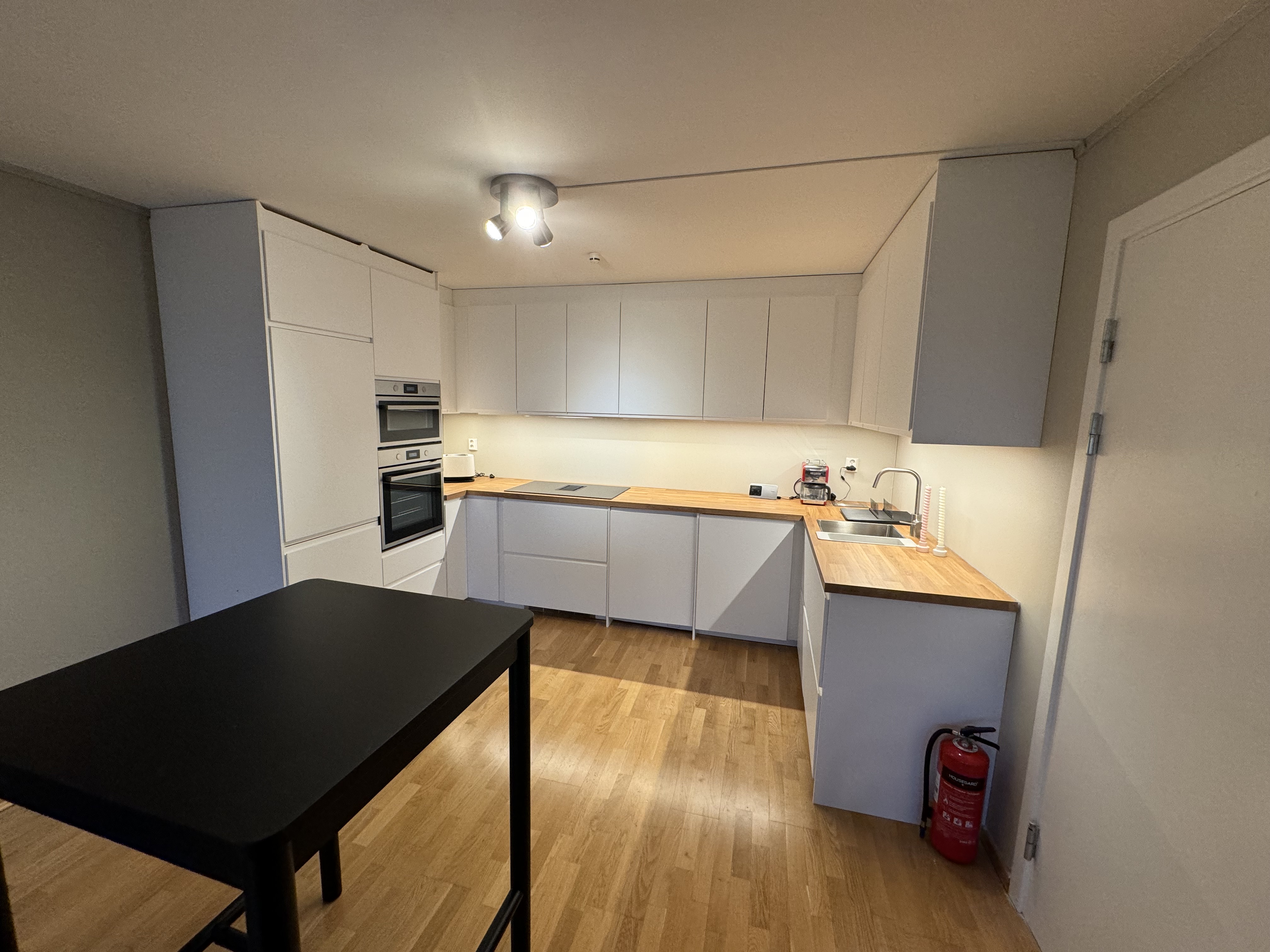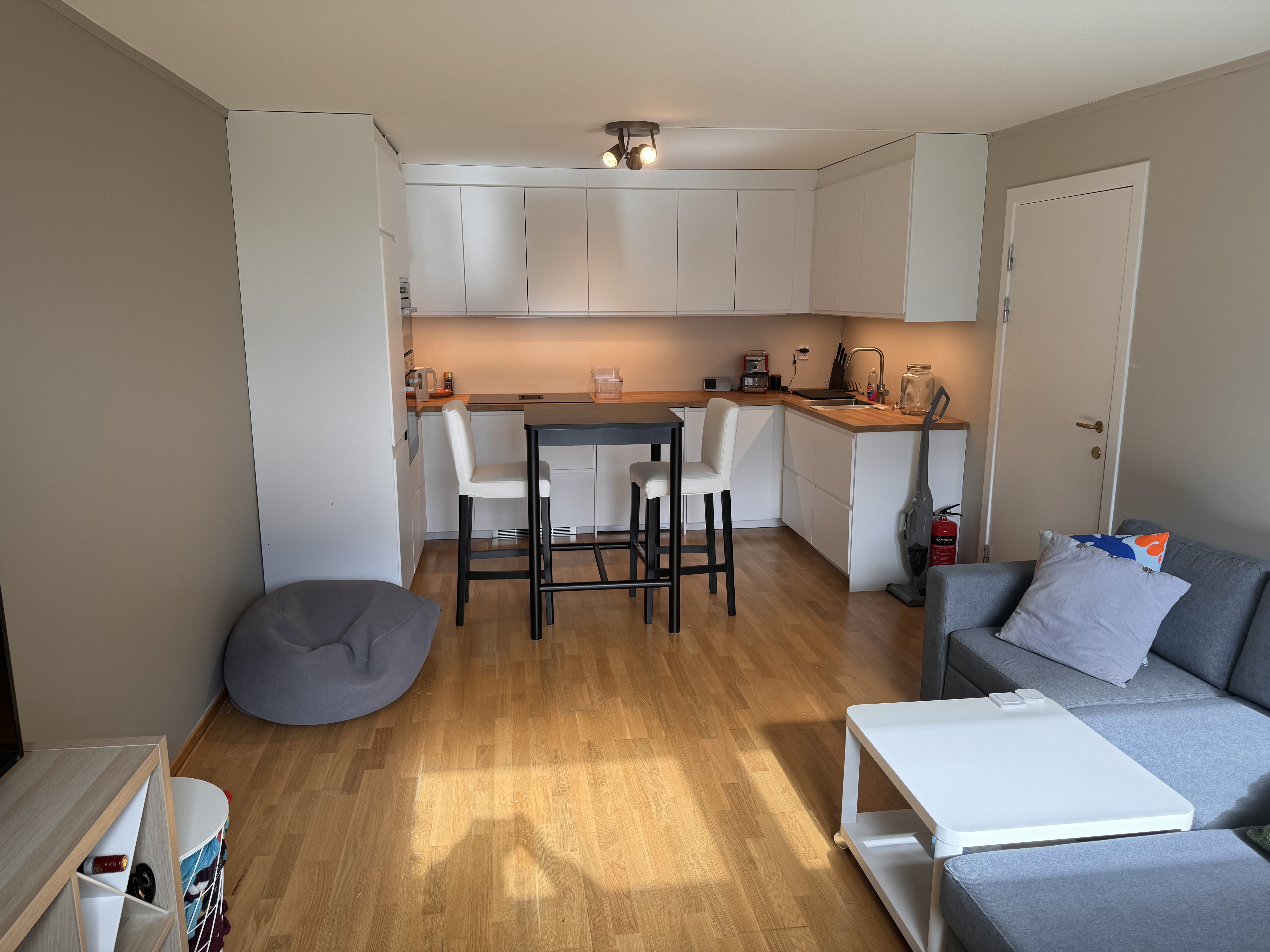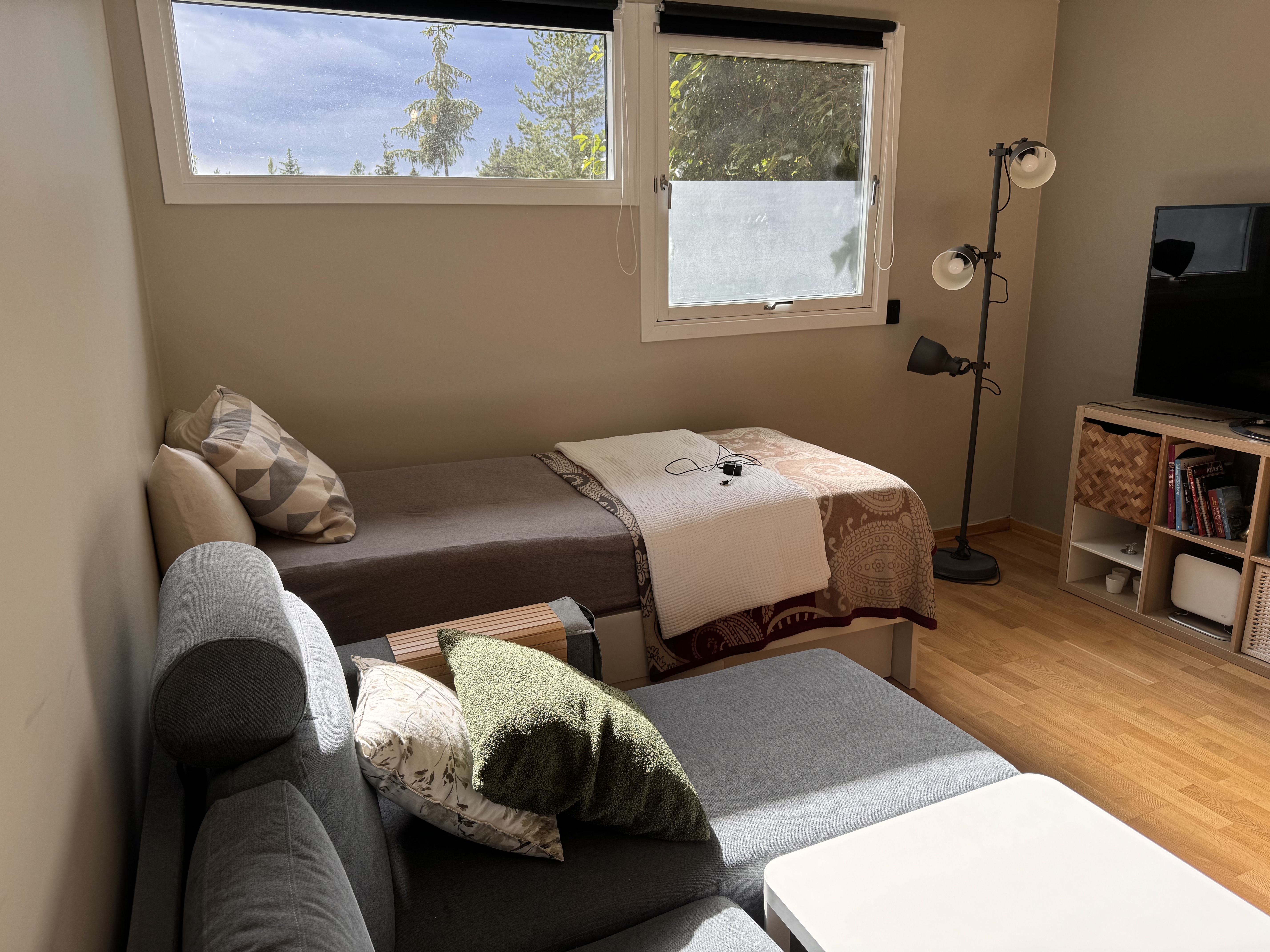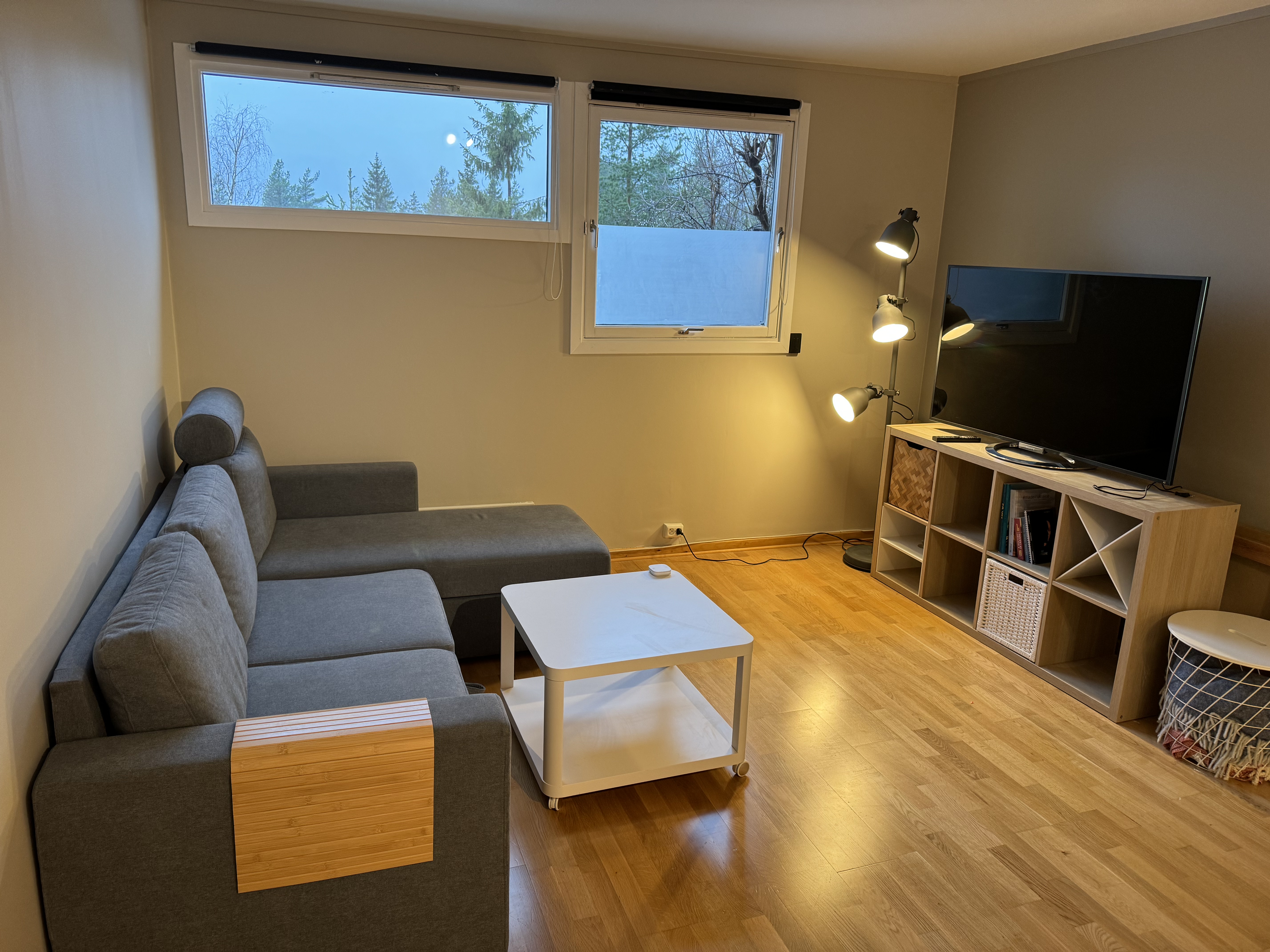 Super apartment on the outskirts of Oslo. There is free parking a few meters from the apartment. The apartment is dog friendly (we even got a dog bed for our dog) and the apartment had everything we needed. Its perfect for two nights. We were friendly welcome by the host. For two people there is a sofa bed to sleep on. There is also a real bed but only for a single person. The front door is a bit noisy and you can hear it every time when someone leaves or arrives. There is a bus station as well as the subway line 1 only 100 meters walk, but with many stairs. It is 40 minutes to the center by metro.